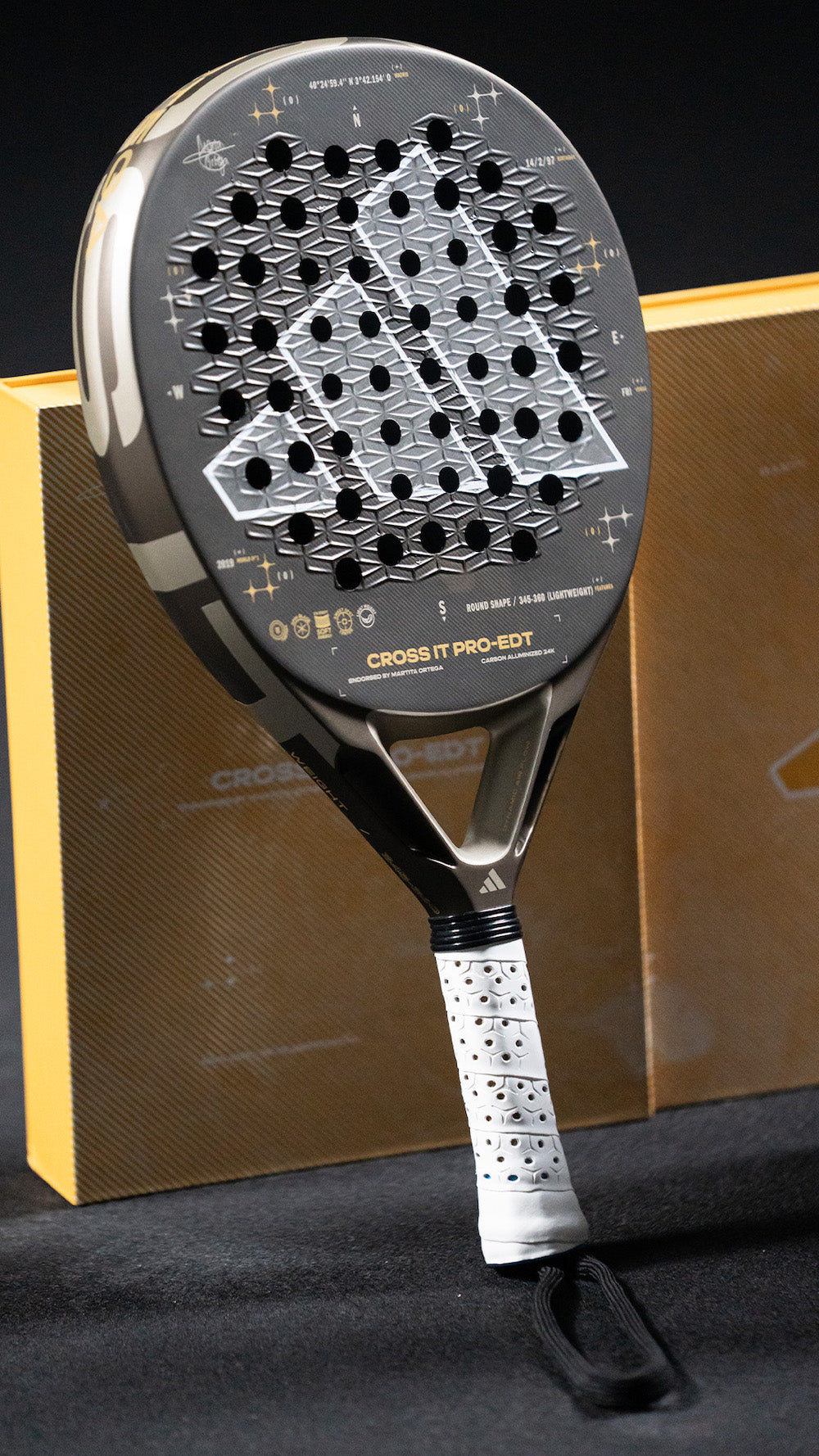 Cross It Pro Edt 2025 är resultatet av ett unikt samarbete med Martita Ortega, en spelare som förkroppsligar den nya generationen padel: precis, djärv och taktiskt briljant. Inspirerad av Venus energi är detta racket för dem som inte bara spelar – utan lyser upp planen med sin egen stil. Från Madrid vägledde Martita oss i att skapa ett racket som inte bara presterar – utan uttrycker. Dess design, liksom hennes spel, lämnar ett intryck som förenar och varar.