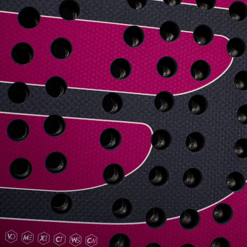 Den yttre kärnan är gjord av Xtend Carbon 3K kofiber, den inre kärnan av det nya MultiEva-gummit och CarbonTube-ramen av 100 % kolfiber. Den har Vibradrive-systemet för vibrationsdämpning. Dessutom innehåller den Hesacore-greppet, vilket minskar ansträngning, vibrationer och risken för skador.