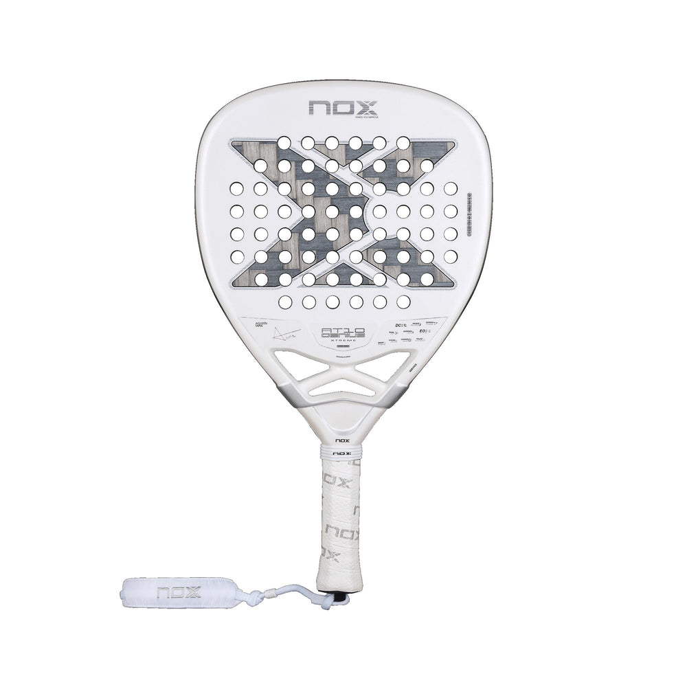 Dess diamantform, höga balans och längre grepp erbjuder offensivt spel utan att kompromissa med kontrollen. Den har de viktigaste innovationerna i den nya AT10-kollektionen: motviktssystemet Weight Balance, som möjliggör personlig racketbalans, reaktiv finish med fotokromfärg och Dual Spin-ytan, som förbättrar spinngenereringen. Förutom en omdesignad form presenterar den nya 12K Alum Xtrem Carbon, en exklusiv NOX-utveckling som ger större styvhet, en finare och mer enhetlig yta, ökad hållbarhet och stabil prestanda även under extrema temperaturförändringar.