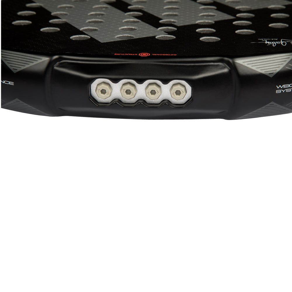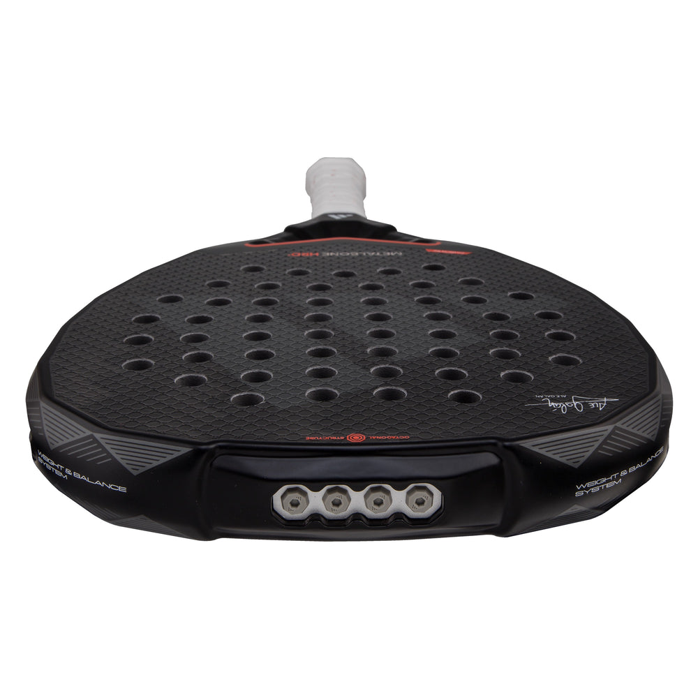Metalbone HRD+ 3.4 er en af Ale Galáns to nye modeller, en sand hyldest til kraft og aggressivt spil. Dens design har høj stivhed takket være de anvendte premiummaterialer. Teknologier som Power Extra Grip, Low Poly og Power Groove giver spillerne mulighed for at slippe deres mest kraftfulde slag løs og løfte dem til elitestatus i padelverdenen. Derudover tilføjer Weight & Balance System et ekstra inertipunkt til hvert slag, hvilket forbedrer præstationen på banen. WEIGHT & BALANCE SYSTEM METALBONE: Tilpas vægten og balancen efter din smag. Det nye og forbedrede aftagelige vægtsystem giver dig mulighed for at justere ketcherens vægt med i alt 11,2 g. POWER EXTRA GRIP: Det længere greb øger slagenes kraft. LOW POLY: Det polyedriske design af ketcherens ramme og kerne giver større stivhed og kraft. POWER GROOVE: En skinne indsat i ketcherens profil øger den strukturelle stivhed og forbedrer kraften. HIGH MEMORY: Eva-gummi med høj densitet. Øger kraften i højhastighedsslag. Velegnet til spillere med et højere teknisk niveau. Ketsjere med denne gummi er identificeret med den røde hat. KULSTOF ALUMINISERET 16K: Høj stivhed og holdbarhed med maksimal kraft. Resultatet af at inkorporere aluminium i kulfiberen er et hårdere touch, perfekt til hårdtslående spillere, der foretrækker denne soliditet for at udnytte al kraften i deres arm. DIAMANT: Meget afbalanceret format, der favoriserer offensive slag. Den nye Metalbone-serie inkluderer nu et nyt Diamond-format. Med mere vægt placeret øverst på ketsjeren øges inertien, hvilket giver forbedret kraft i angrebsslag.