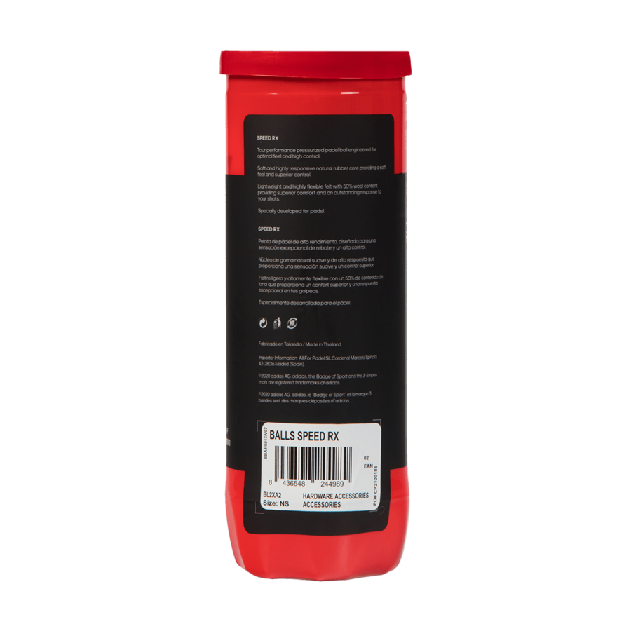 Adidas Speed RX er en premium bold med meget god kontrol og holdbarhed. Det giver optimal afvisning og følelse på padlen. Solgt i 3-pack.