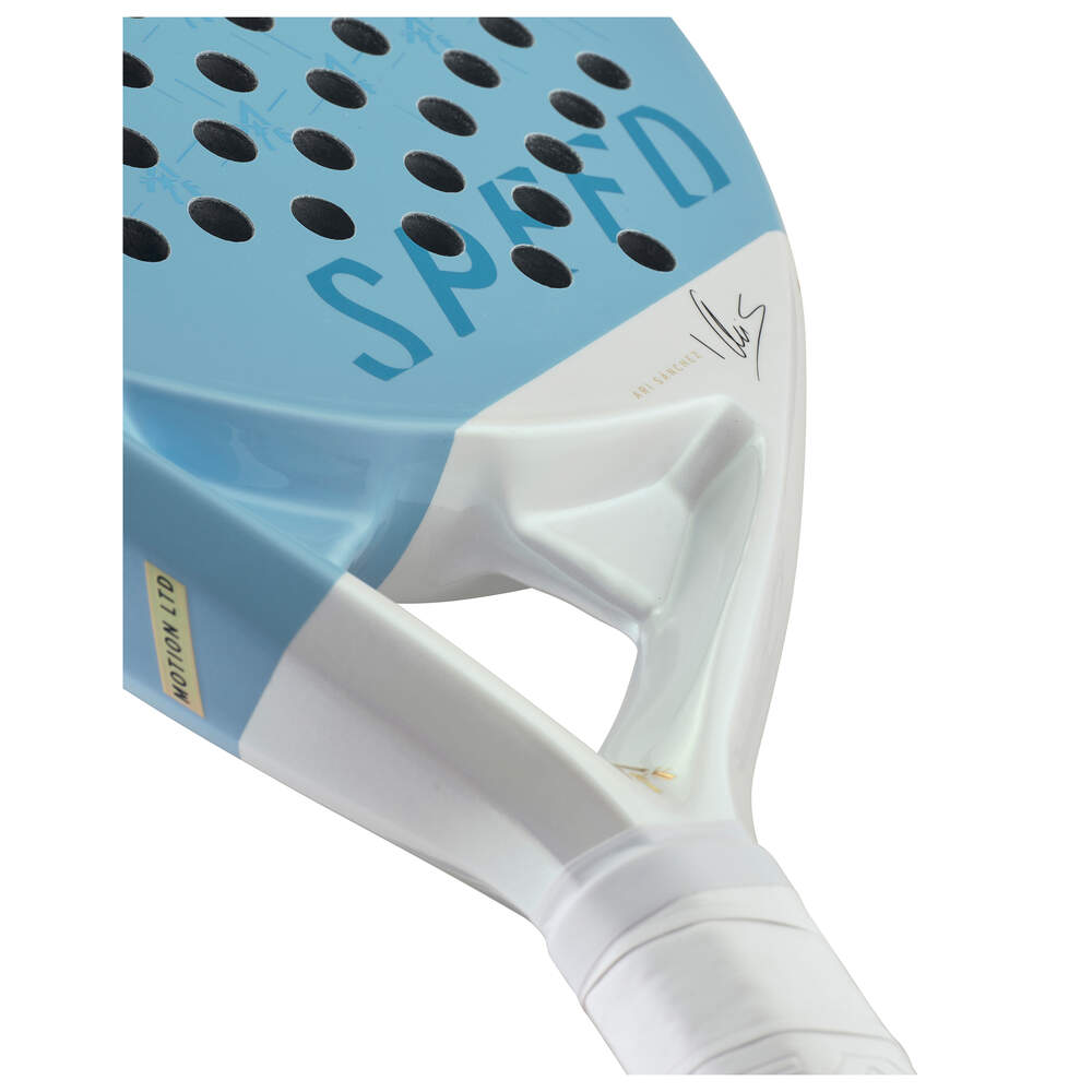 Based on the Speed Motion model, featuring the same specs and technologies, the limited-edition SPEED MOTION ARI SÁNCHEZ padel racquet includes an exclusive design for world number one ‘Magic Ari’. Her magic touch has been incorporated into the racquet design with some holographic details. As the co-designer, Ari chose the colors for this limited-edition racquet, adding to the elegant and exclusive design, which includes her signature. Made from a teardrop-shaped mold, this racquet is ideal for advanced and professional players who are looking for power without losing control, with an extra of maneuverability. • Limited edition co-designed by world number one Ari Sánchez • Elegant and exclusive colors chosen by Ari • Design includes Ari’s signature and ‘Magic Ari’ character • Made for advanced and professional players looking for power without losing control • Versatile and maneuverable • Teardrop-shaped mold • Based on Speed Motion model, featuring same specs and technologies • Exclusively includes the Pro Spin Strips accessory, the new adhesive strips with a rough surface to generate more spin