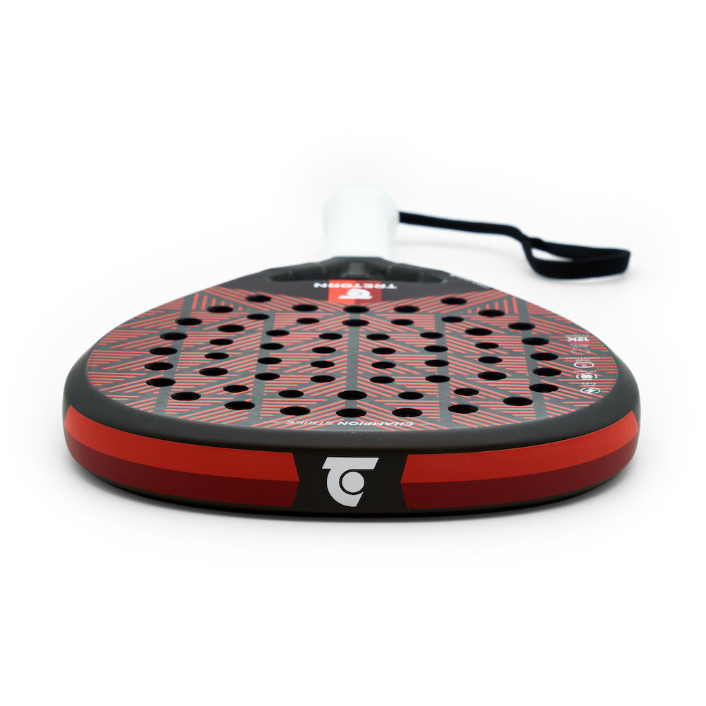 Discover CHAMPION STRIKE - The perfect racket for the offensive player! With an exceptional combination of technology and materials, this racket gives you the power to dominate, and the control to deliver precision shots. Let's look into the impressive features that CHAMPION STRIKE has to offer. CHAMPION STRIKE features a Japanese 12K carbon fiber layer that not only provides impressive power in your offensive shots but also a deep and energetic response. This gives you the ability to take control of the game and leave your mark on every point. Together with the EVA FLEX core, you get an outstanding mix of feel and touch in the game. Every shot feels precise and responsive, enabling you to play with small margins to maintain control over the game. Perfect for players with an exceptional abillity to control the ball. The racket is also equipped with a DUAL-hole pattern that optimizes the racket's contact points, enhancing the ability for controlled shots even when hitting outside the racket's sweetspot. The result? Constant power and precision that allow you to decide the pace of the game. Additionally, you can maximize your spin with our multi-directional 3D decal to surprise your opponents with variation in your game. CHAMPION STRIKE gives you the opportunity to be versatile and adapt your style to every situation.