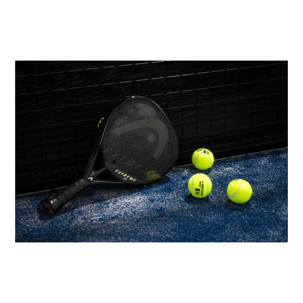 Vallankumouksellinen EXTREME ONE PADEL -MAILA on EXTREME-sarjan kevyin maila; se on myös vahvin, ja siinä on huippuluokan 12K hiilikuituinen läpinäkyvä osumapinta, joka lisää kestävyyttä. Uudesta, timantinmuotoisesta muotista valmistettu maila on kevyt, tehokas ja aerodynaaminen, ja se antaa sinulle tasaisen spinin. Innovatiivinen Auxetic-teknologia tarjoaa lisävoimaa ja sensaatiomaisen iskutuntuman, kun taas Soft Butt Cap -teknologia tarjoaa pehmeämmän pelituntuman ja vaimentaa tärinää. Korkean suorituskyvyn lisäksi EXTREME ONE tarjoaa huippuluokan, alkuperäisen muotoilun kiiltävällä ja mattapintaisella viimeistelyllä. • Vallankumouksellinen muotoilu ainutlaatuisella lyöntipinnalla, joka lisää kestävyyttä • 12K hiilikuituinen läpinäkyvä osumapinta • Sarjan kevyin ja vahvin maila • Teho, tasainen spin ja aerodynaaminen • Uusi, timantinmuotoinen muotti • Soft Butt Cap -teknologia • Auxetic-teknologia lisävoimaa ja sensaatiomaista iskutuntumaa varten • Alkuperäinen, ensiluokkainen muotoilu kiiltävällä ja mattapintaisella viimeistelyllä
