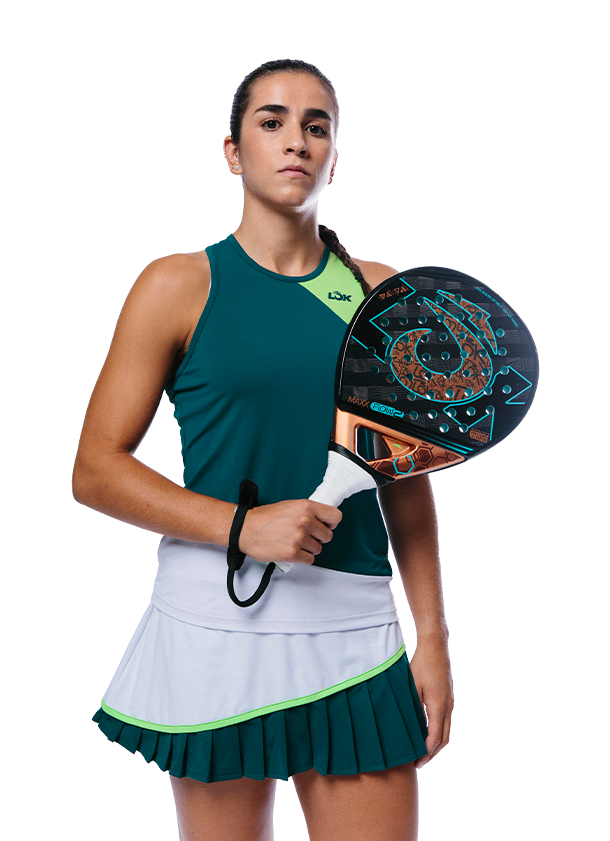 Maxx Flow 2 fra Bea Caldera er designet for spillere som ikke vil stoppe, for de som ser på banen som ren fart, kraft og energi. Den asymmetriske kjernen opprettholder balansen i hvert slag, men gjør det uten å gå på akkord med aggressiviteten: hver sving blir enkel kraft. C18 karbonfiber multipliserer racketens soliditet og respons, mens EVA-minnegummi returnerer all energien slik at hvert treff teller. Gradual Face-teknologi og Vibration Groove absorberer vibrasjoner og forvandler følelsen av støtet til ren komfort, selv på de vanskeligste punktene. Og hvis du vil ha spinn, er 3D Spin Lines din beste allierte: mer rotasjon, mer kontroll, mer fordel. Med et ungt og vågalt design er Flow 2 ikke bare en høyytelsesracket: den er et uttrykk for intensjon både på og utenfor banen.