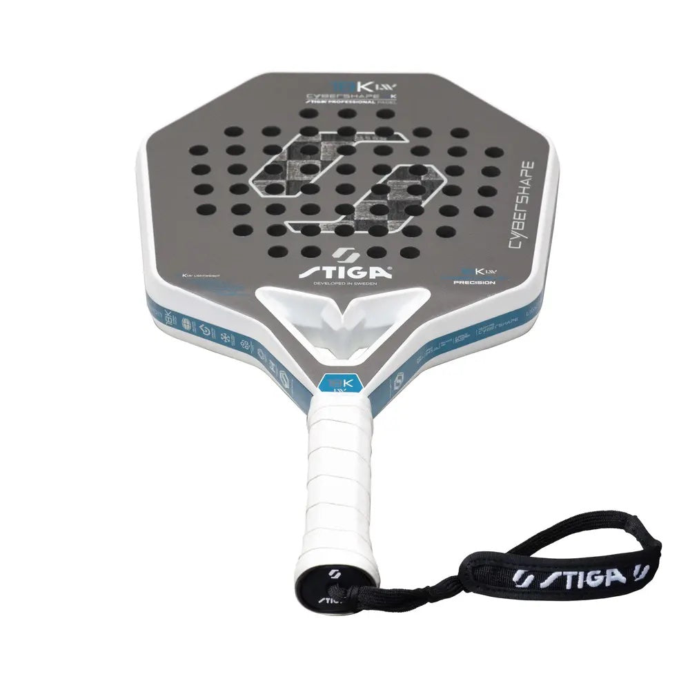 Den unike cybershape -formen bidrar med en sjenerøs og bedre optimalisert treffoverflate som gir deg en unik fordel på banen. Takket være den sekskantede formen, er søtspotten hele 20 % større og sitter også høyere enn på tradisjonelle padle -racketer. Sweetspot er rett og slett vanskelig å savne. De rette linjene stemmer også perfekt med bananen og gjør det lettere å slå baller nærmere glasset og bakken. Det lange håndtaket lar deg få en virkelig god posisjon og mer fleksibilitet i spillet ditt.