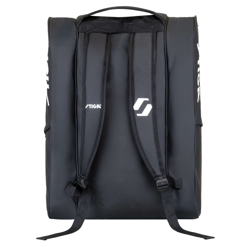 Väskan kan bäras i handtaget eller som en bekväm ryggsäck med justerbara axelband. Den är gjord i slitstark nylon och kommer i klassisk svart. Med STIGA Court får du padelhallens snyggaste väska med mycket god förvaring för allt du kan tänkas behöva!